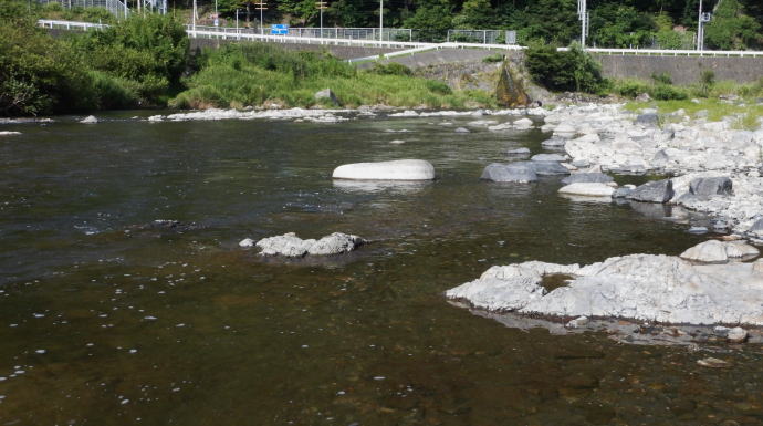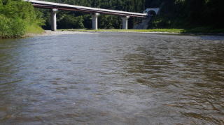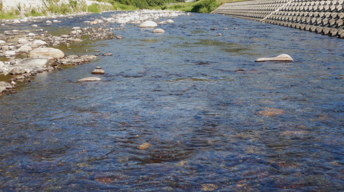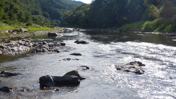 平常水位で濁りもだいぶ薄まっているから、流れを凝視してみるが、魚影は確認できない。