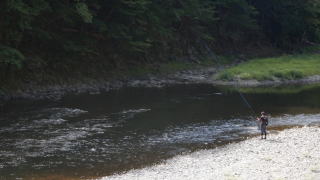 10:00の稗貫川、最初の場所には先行する釣り人2名。