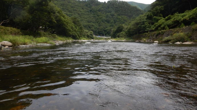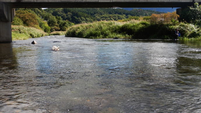 場所移動して下流部、ここも同じように群れ遊ぶだけの魚影はある。