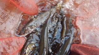 2時間半この区間を歩き回り、次回のオトリに使えそうな7匹を獲って力が尽きた爺様であった。