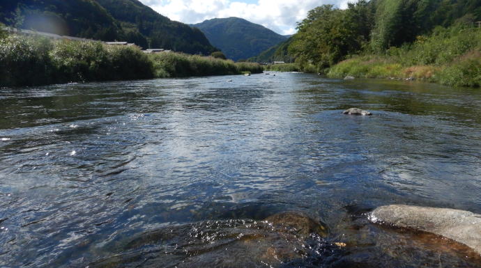若干高めの水位、気仙川今季3回目の釣行は世田米街裏。